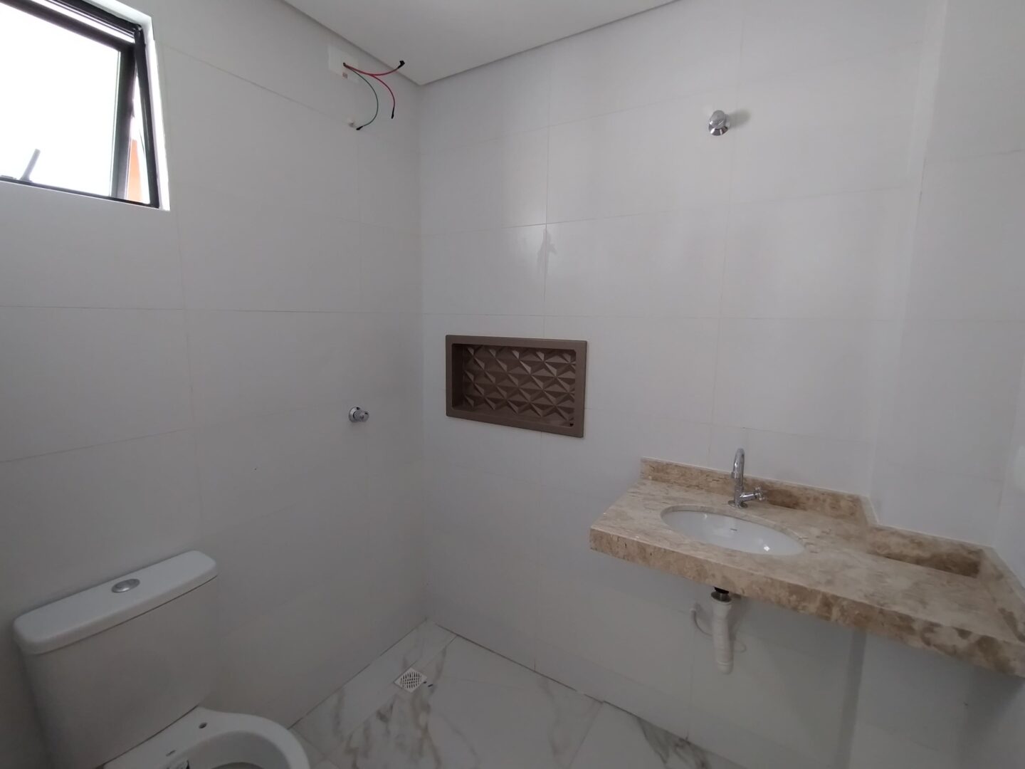 - Banheiro com nicho embutido e teto rebaixado